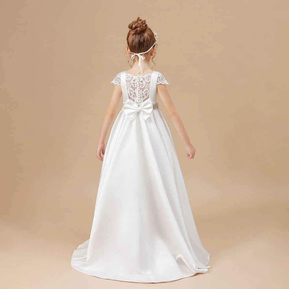 Festliches Kommunionkleid aus weißem Satin