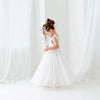 Stellen Sie sich vor, wie sie in diesem prächtigen Festkleid majestätisch den Gang der Kirche entlang schreitet. Dieses Kleid, das von unseren erfahrenen Handwerkern handgefertigt wurde, besticht durch seinen zart drapierten Kragen am Rücken und wird sicherlich viele begeistern! Die zarten Muster, die das gesamte Kommunionkleid zieren, verleihen dieser exquisiten Kreation eine traditionelle Ausstrahlung.