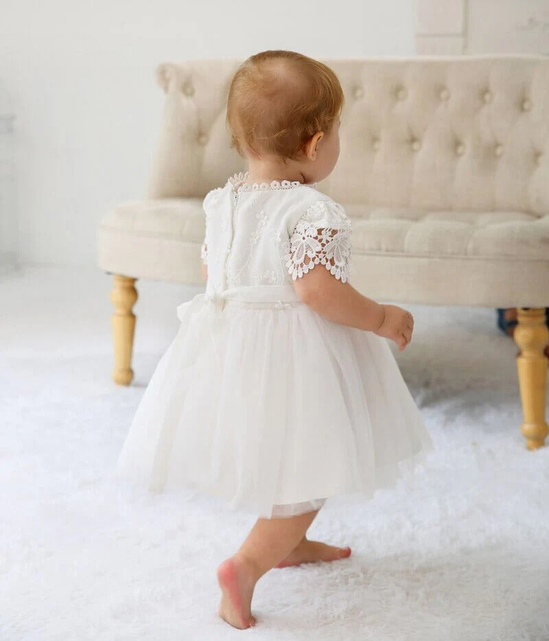 Dieses bezaubernde Taufkleid lässt Ihre kleine Tochter bei ihrer religiösen Zeremonie zugleich niedlich und elegant wirken. Es ist mit weicher Lochspitze verziert und sorgt für höchsten Tragekomfort für Ihren kleinen Engel. Jedes Detail wurde sorgfältig durchdacht, damit dieser Moment für Sie und Ihr Kind so wunderschön wie möglich wird.