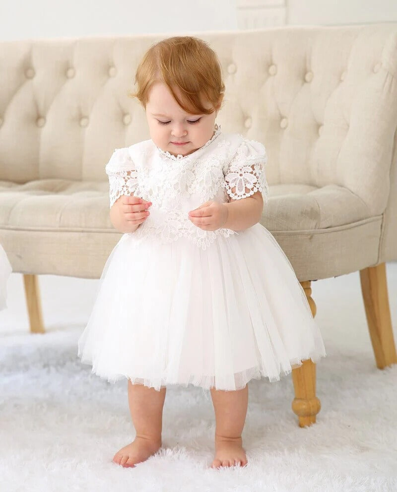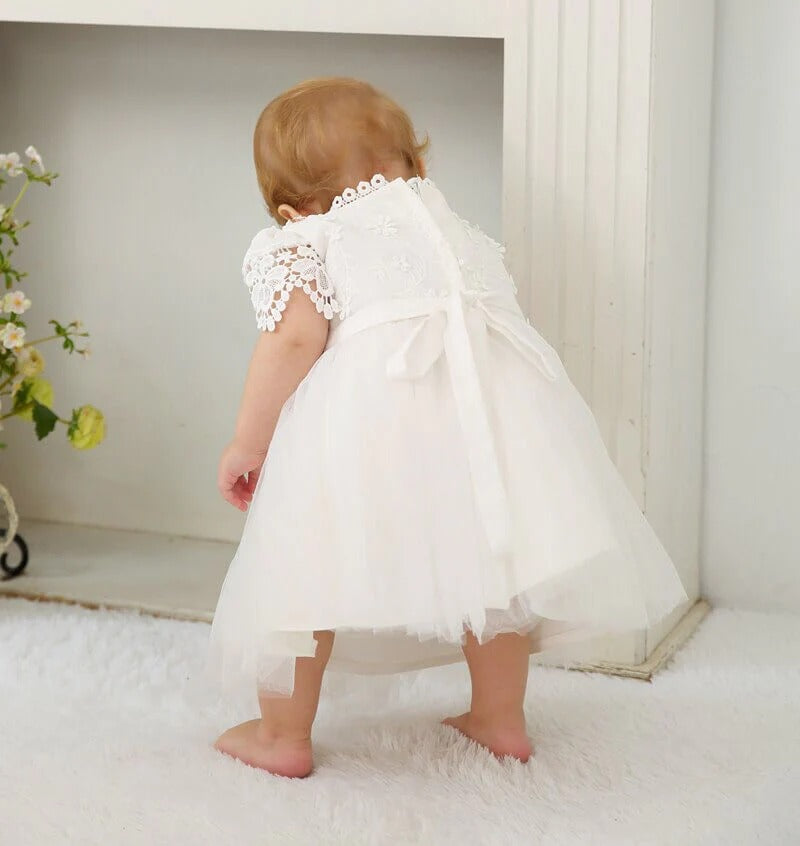 Weißes Spitzen-Taufkleid mit floralen Mustern